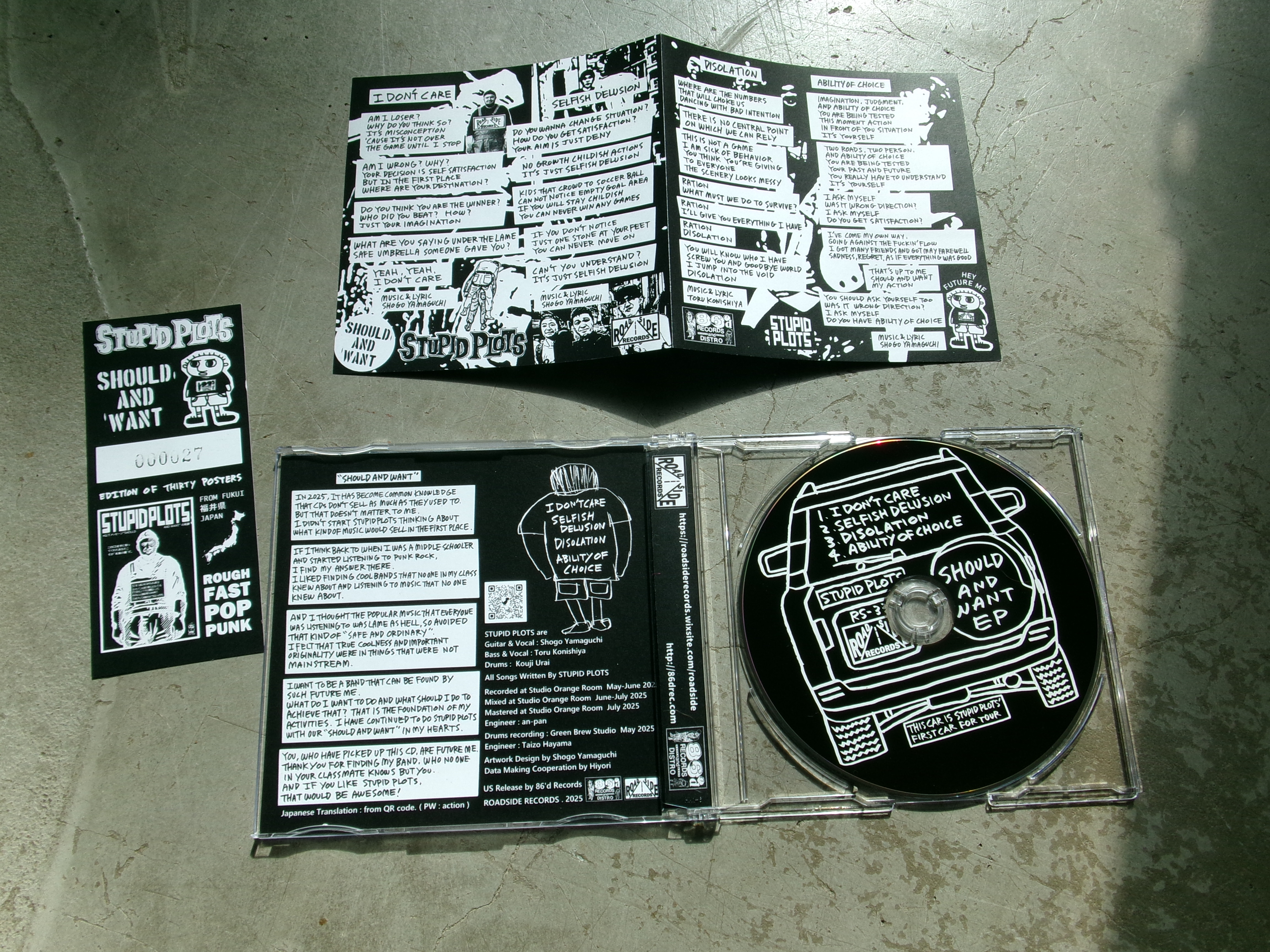 Back with a new lineup since the release of an acoustic CDEP in 2016 and a split CD with THE VEEVERS (UK) in 2021, “Should and Want” is issued on CD in a slimline jewel case with foldout lyric sheet featuring artwork and English liner notes by Shogo (guitar/vocals) and a bonus exclusive poster and numbered card for the first 30 copies sold in the US. The release itself is a tribute to the feeling Shogo had in middle school discovering obscure bands on the CD format (with the slimline jewel case a nod to an old I FARM CD!).